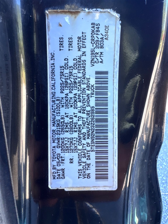 2003 Toyota Tacoma PreRunner Xtracab V6 2WD